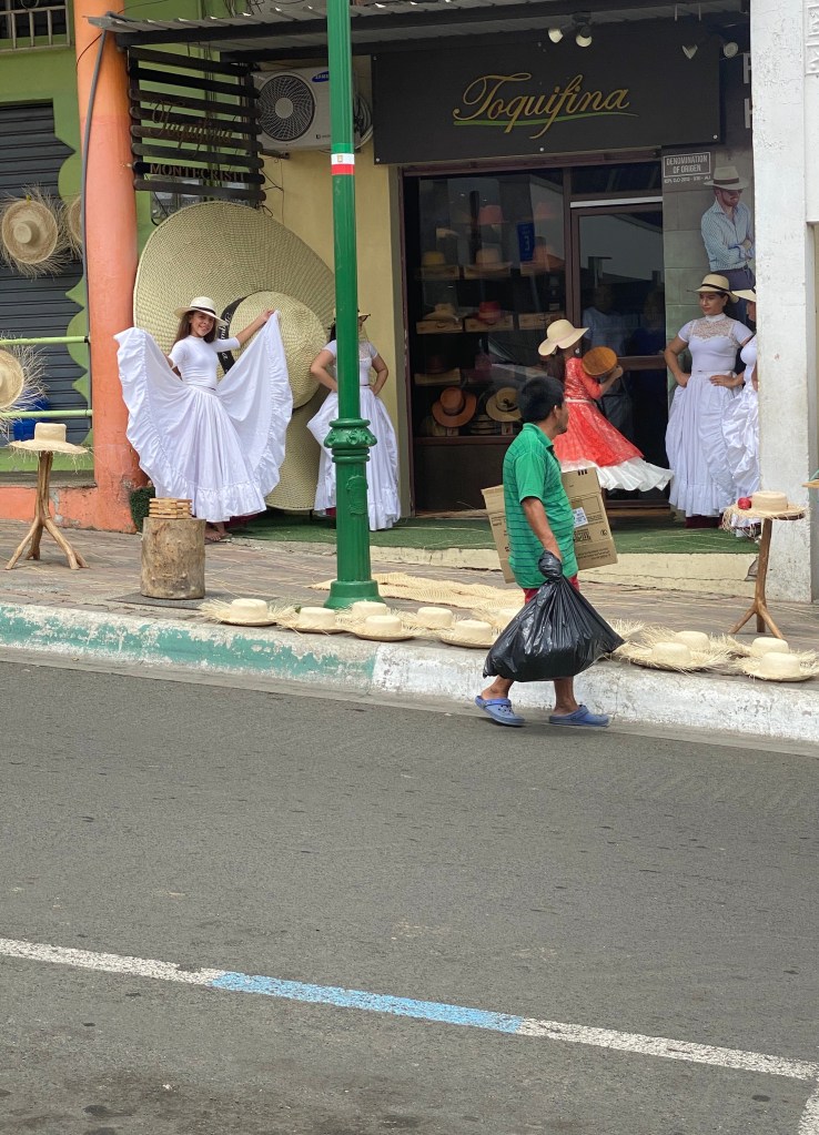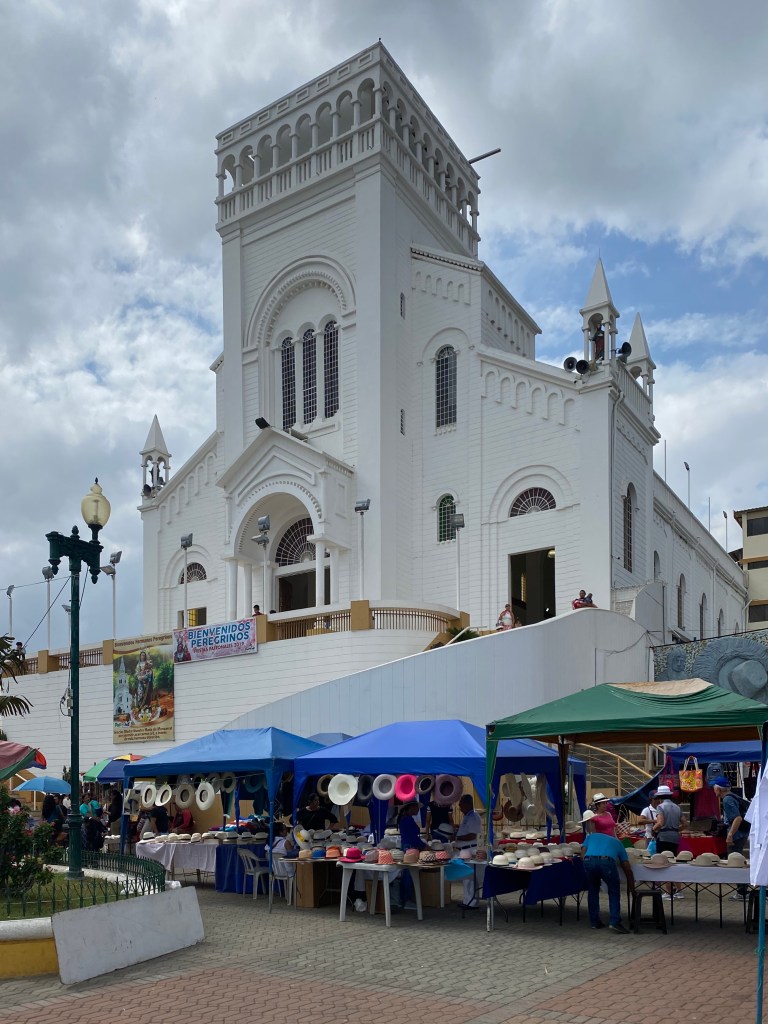 The square is anchored by the church…. surrounded by artisans stalls….selling Panama hats and other local crafts.