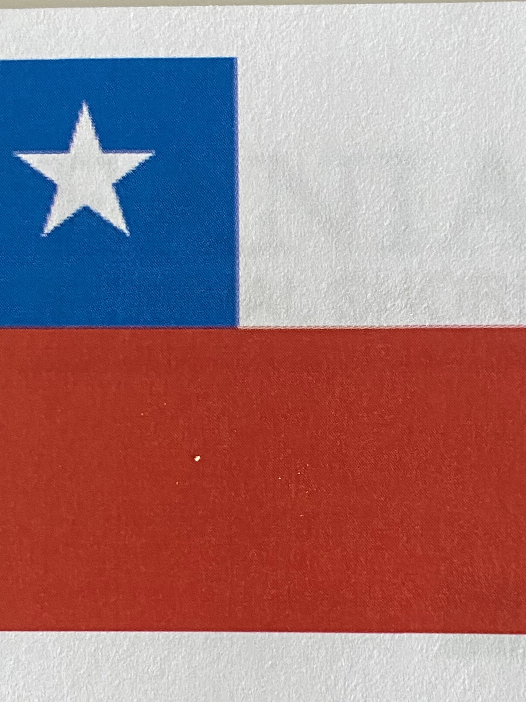 The flag like ours, is red white and blue…white for the snow of the Andes, blue the Pacific Ocean, red for blood in the fight for independence from Spain.