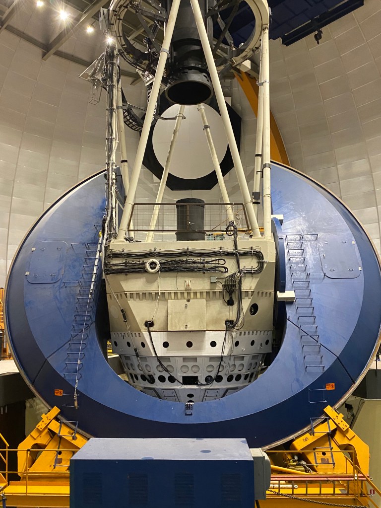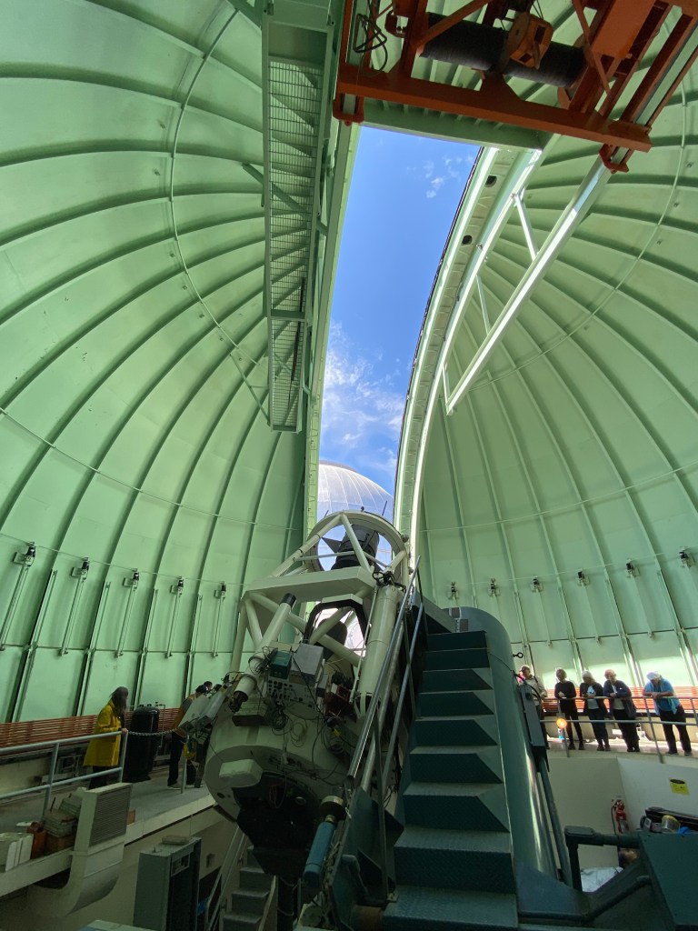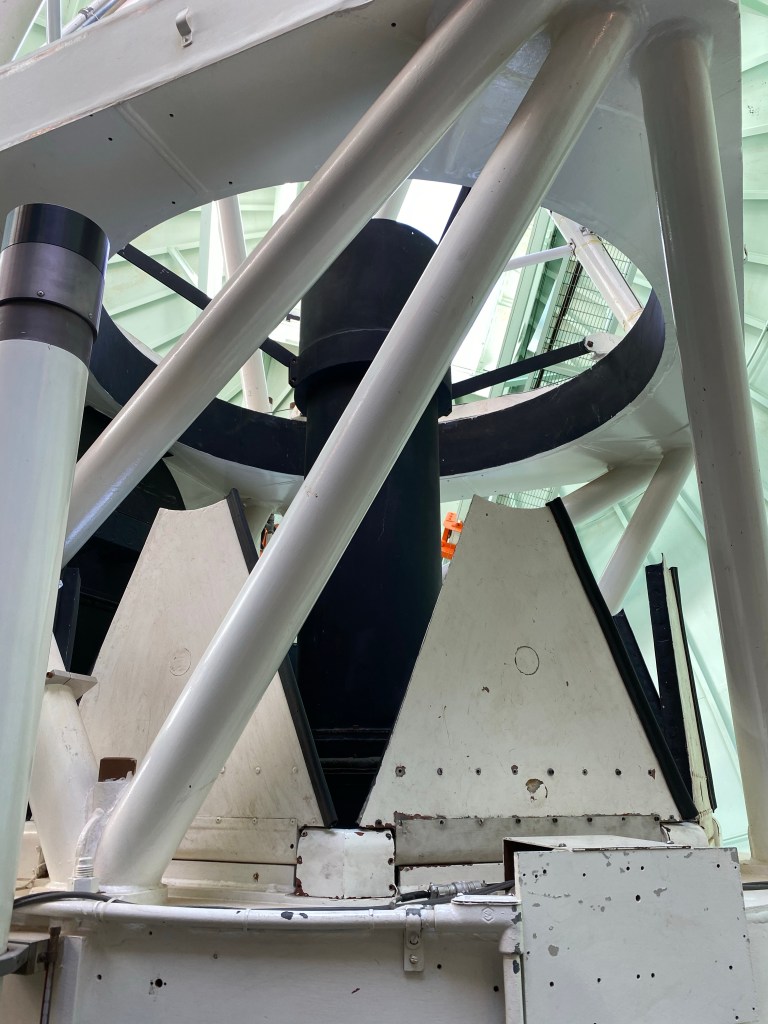 ….the telescope rotates with the planet. Todays’ scientists know longer actually go there to study…..they work from their computer all over the world.