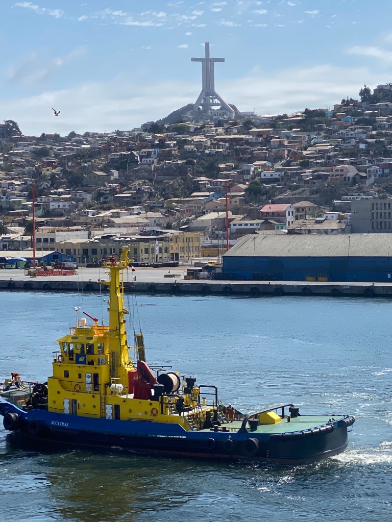 …..as we enter Coquimbo we are greeted by a Massive Cross built in the hillside in 2000 to commemorate the third millennium. ….