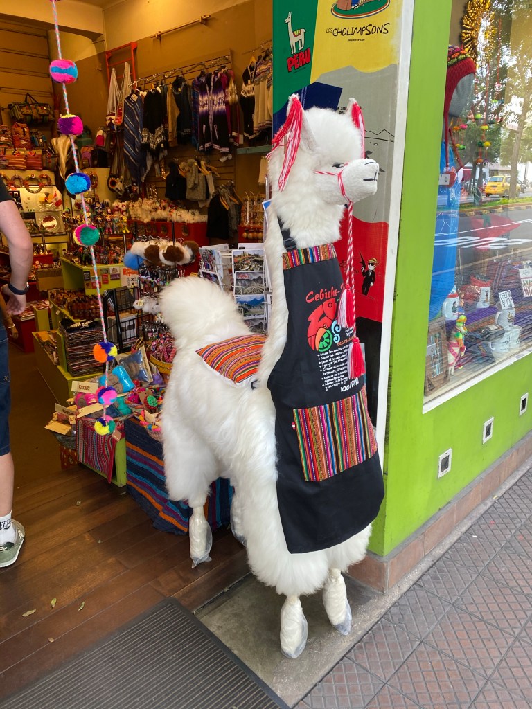 and opted “in” for city browsing …. (code word for shopping) …..and in Lima that means lama sitings… not the real ones…. but every creative expression of a lama can be found in the city center.