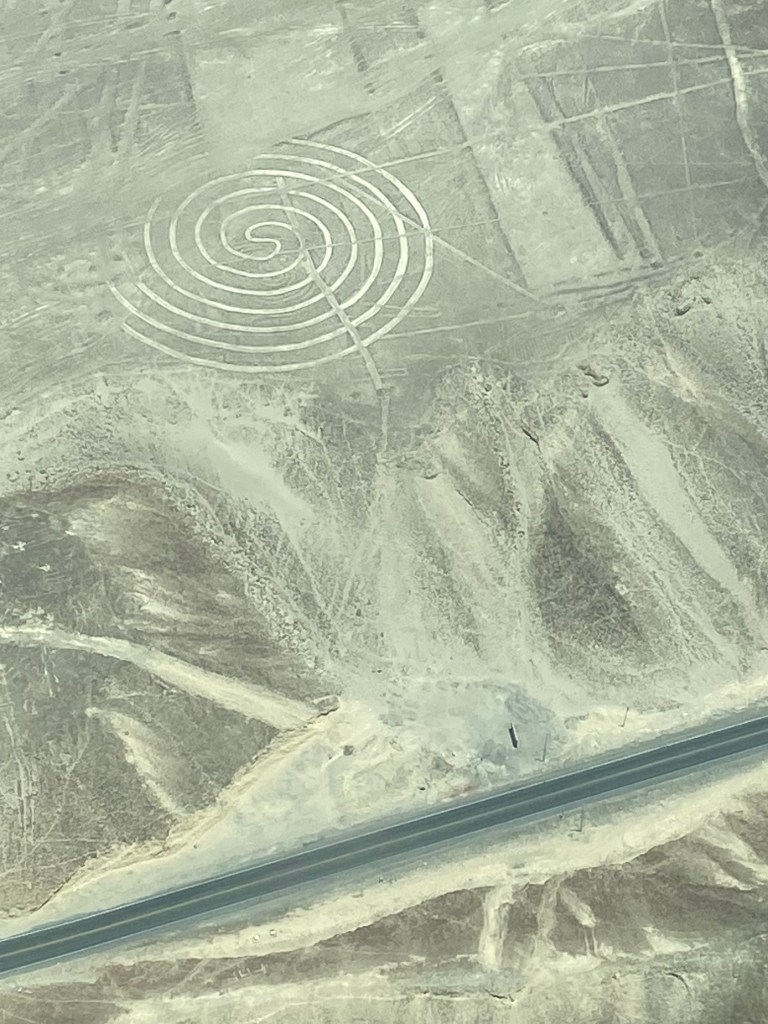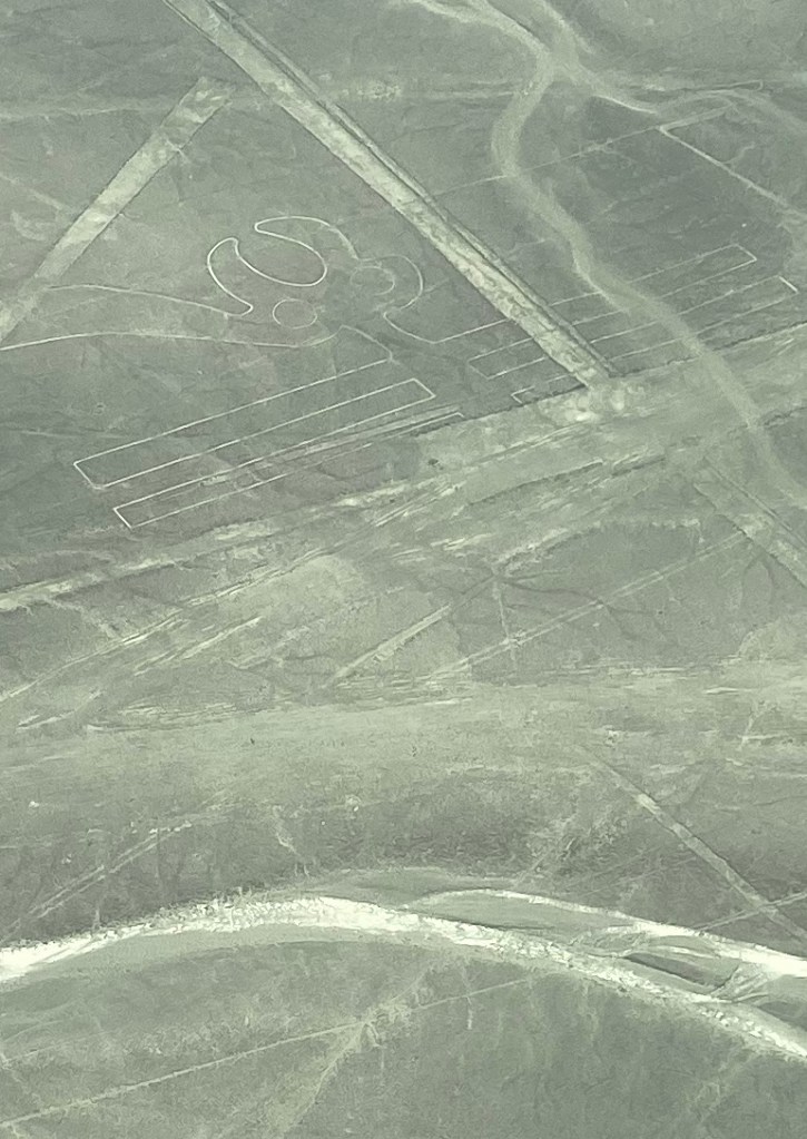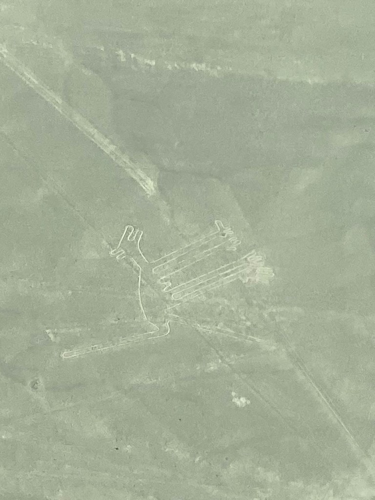 Pisco is also route to the Nazca lines. The Nazca lines are a series of ancient Geoglyphs….. another new word for me….a large design or motif that is marked on the ground.