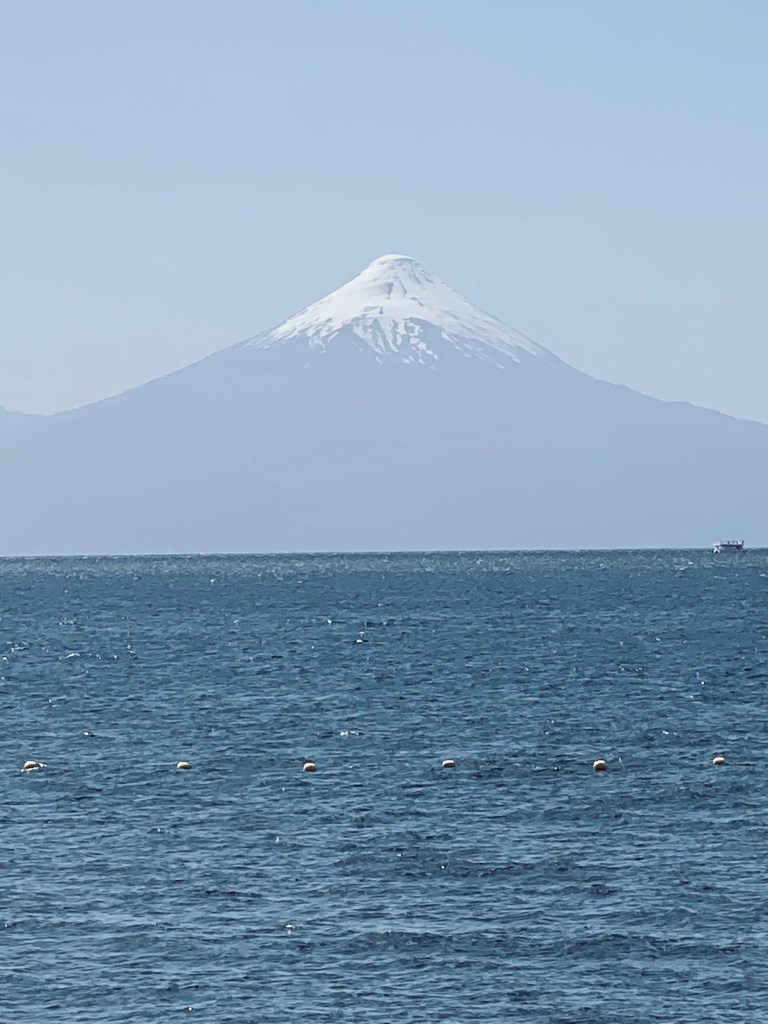 Chile/ the Andes also have volcanos ….most of which have been dormant for years. Puerto Montt has 3 volcanos. Mt Orsono the 8700’ volcano seen off the lake, is active but has been dormant since 1869….the highest volcano of the three is 18,900 feet…. bordering on Argentina