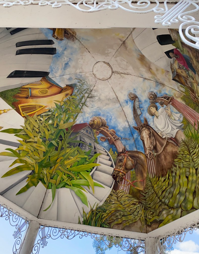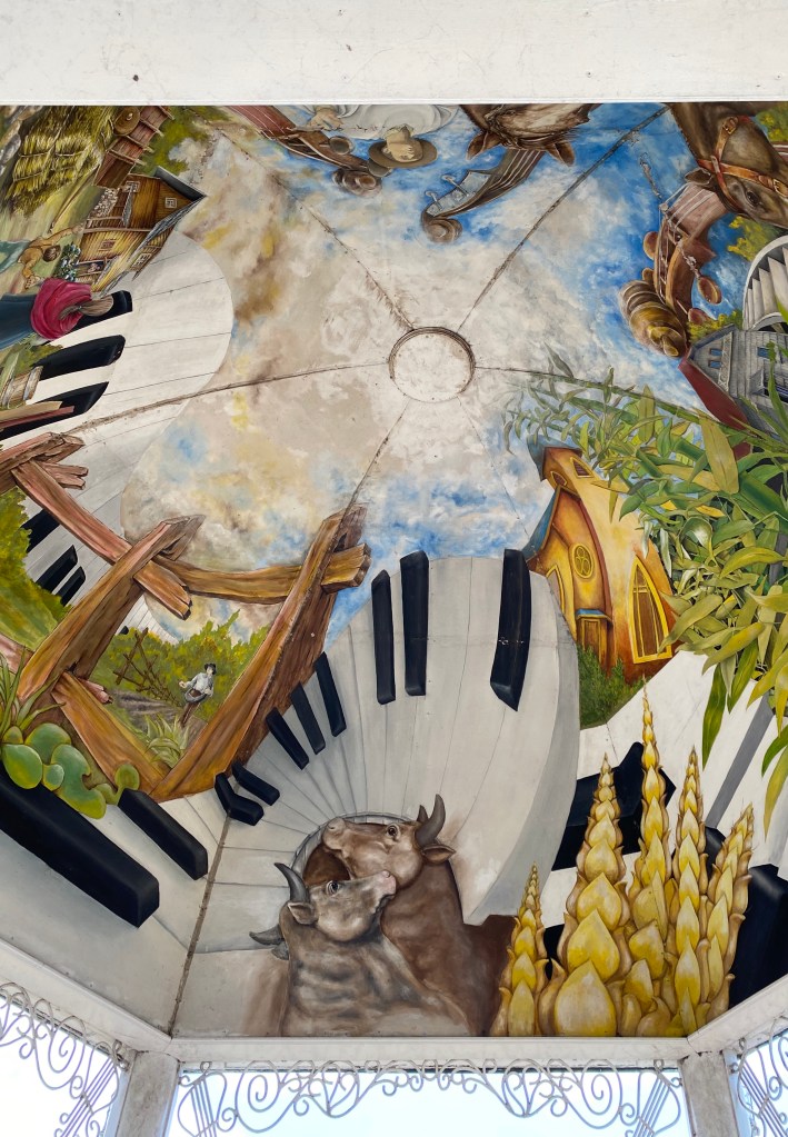 Ceiling of Gazebo depicts life in these German villages (cattle /farming /music )