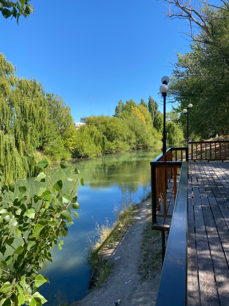 This river became the primary source of water for Madryn …..pumping water from the river up into a steep plateau with large drainage rocks on top. The water is stored in the plateau and flows downward into the city. The amount of water that is released is controlled by a damm.