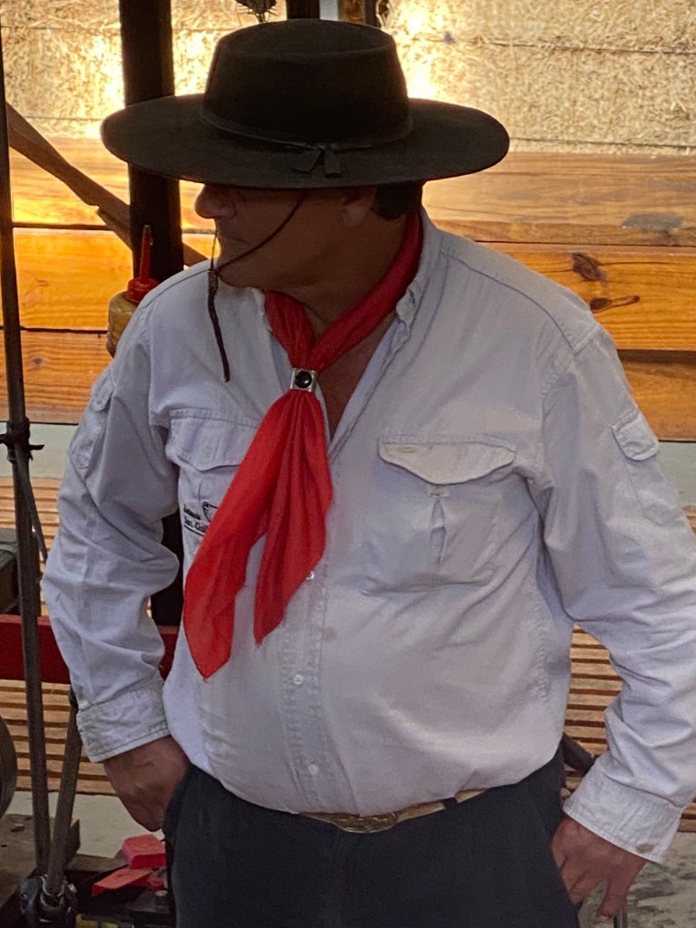 ….this guy could stand to lose a little weight.. a gaucho wears a wide brim hat to keep rain away from his face…. travels by horse with a dog and his knife for days at a time … today the gauchos primarily herd cattle and sheep