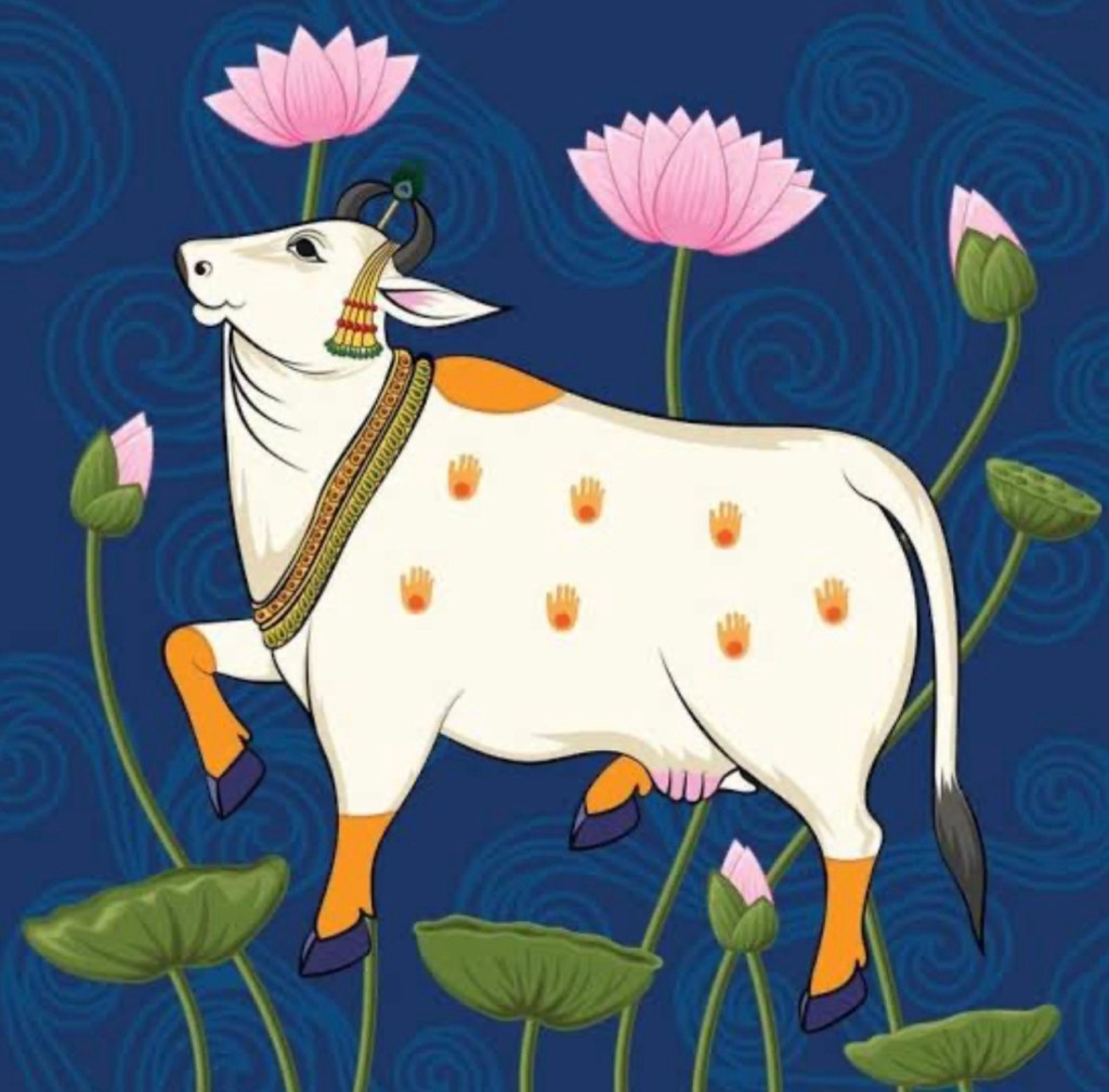 The sacred cow and beautiful lotus flower … believed to be in every Hindus heart … when it blooms they receive spiritual enlightenment. ( I am still waiting on mine. )