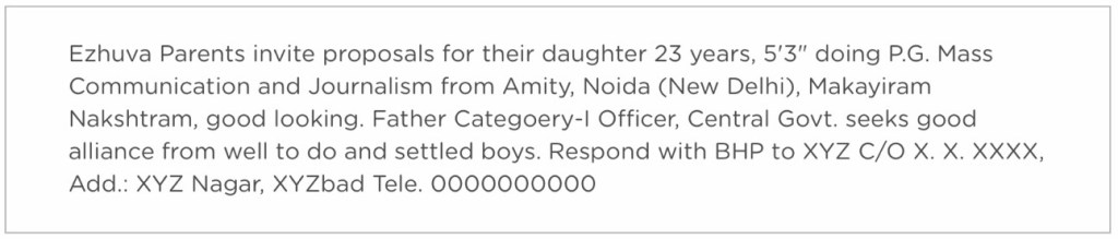 Matrimonial Ad