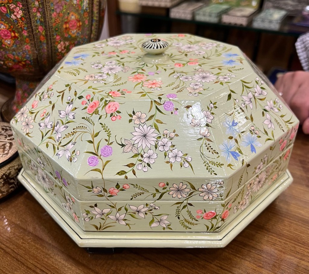 and beautiful Hand Painted Paper Mache boxes … in this case a Jewelry Box