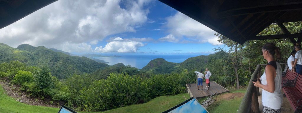It was great to wake up to a beautiful view of a tropical paradise. Blue skies …. ( It looked better than ever after the smog in Asia) turquoise water and lush greenery. So we took a tour to check it out.